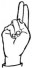 На ћирилици написано РАДНА ПЕТРОВИЋ састоји се из 13 слова [?]. Исписано ћириличном једноручном азбуком за глувонеме: